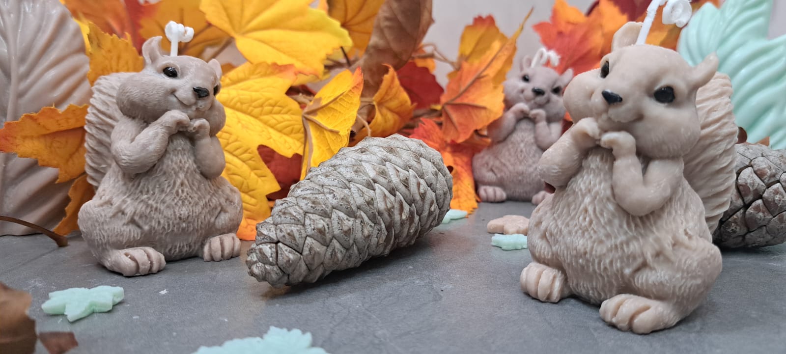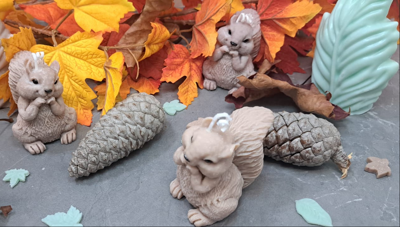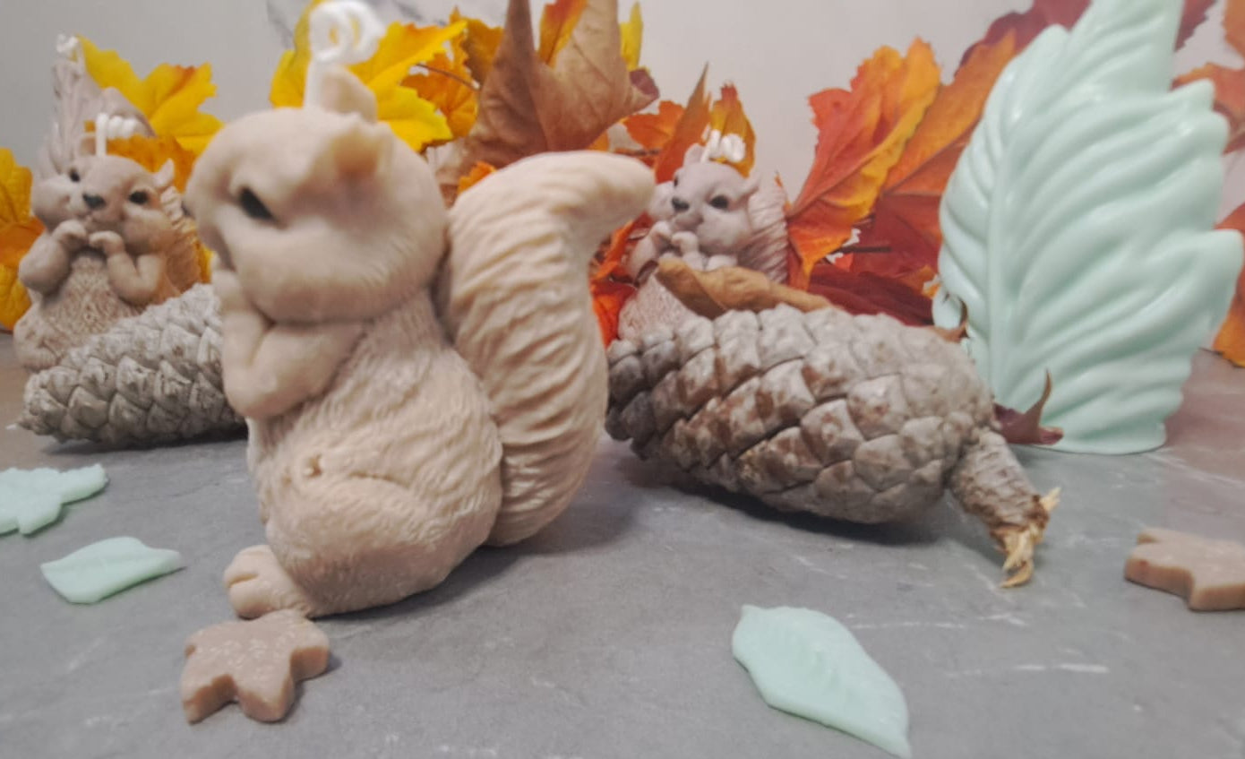 Estas adorables velas con forma de ardilla son perfectas para dar un toque acogedor y otoñal a tu hogar. Cada ardilla está cuidadosamente elaborada a mano con cera de soja vegetal 100% natural, sin parafinas ni materiales tóxicos.