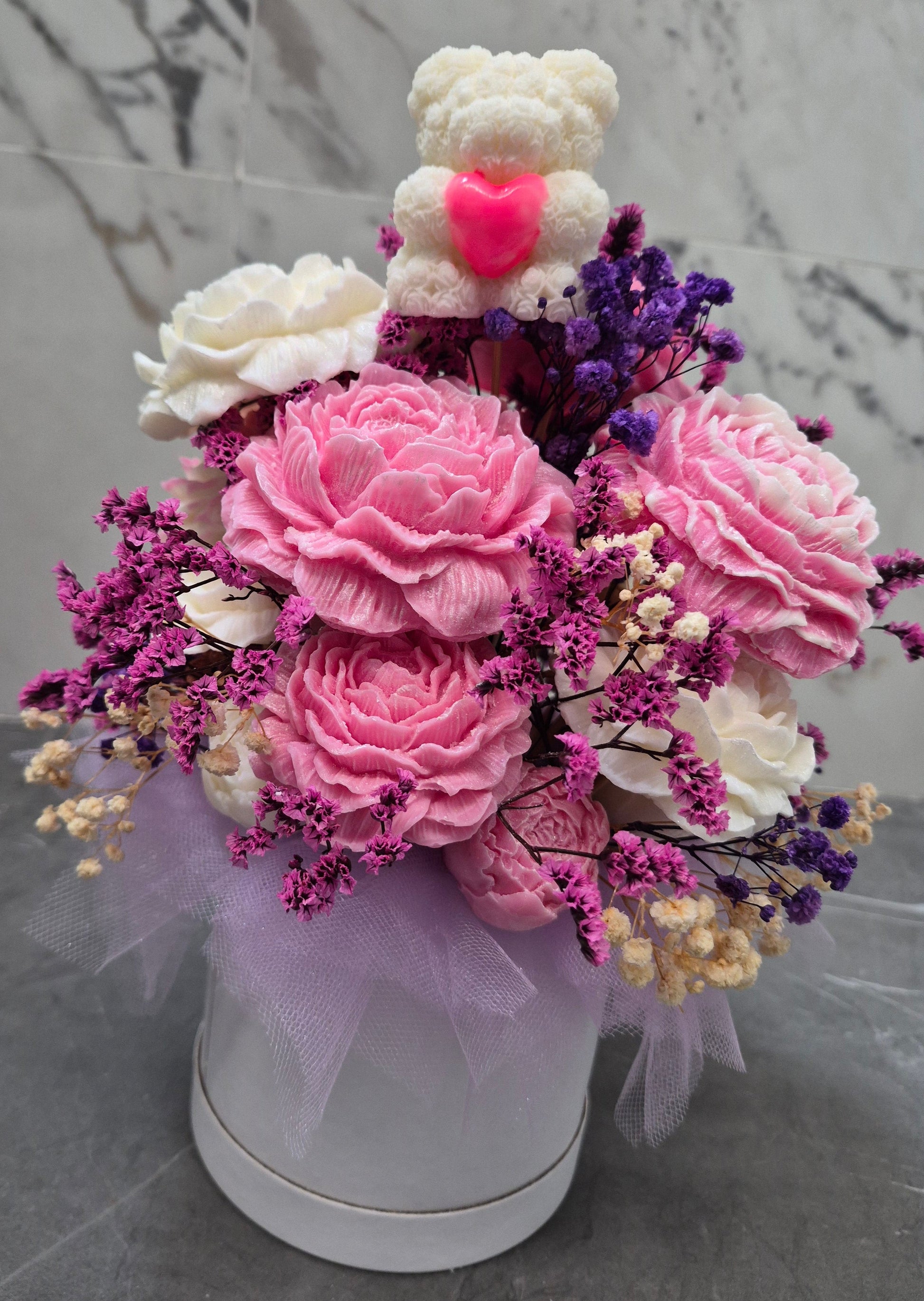 Descubre la belleza eterna de nuestro bouquet de flores aromáticas de cera, una alternativa duradera y decorativa que combina el encanto visual de las flores con fragancias deliciosas que perduran en el tiempo.