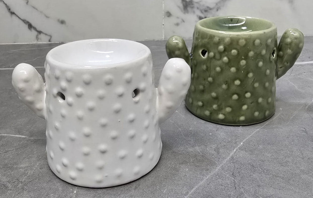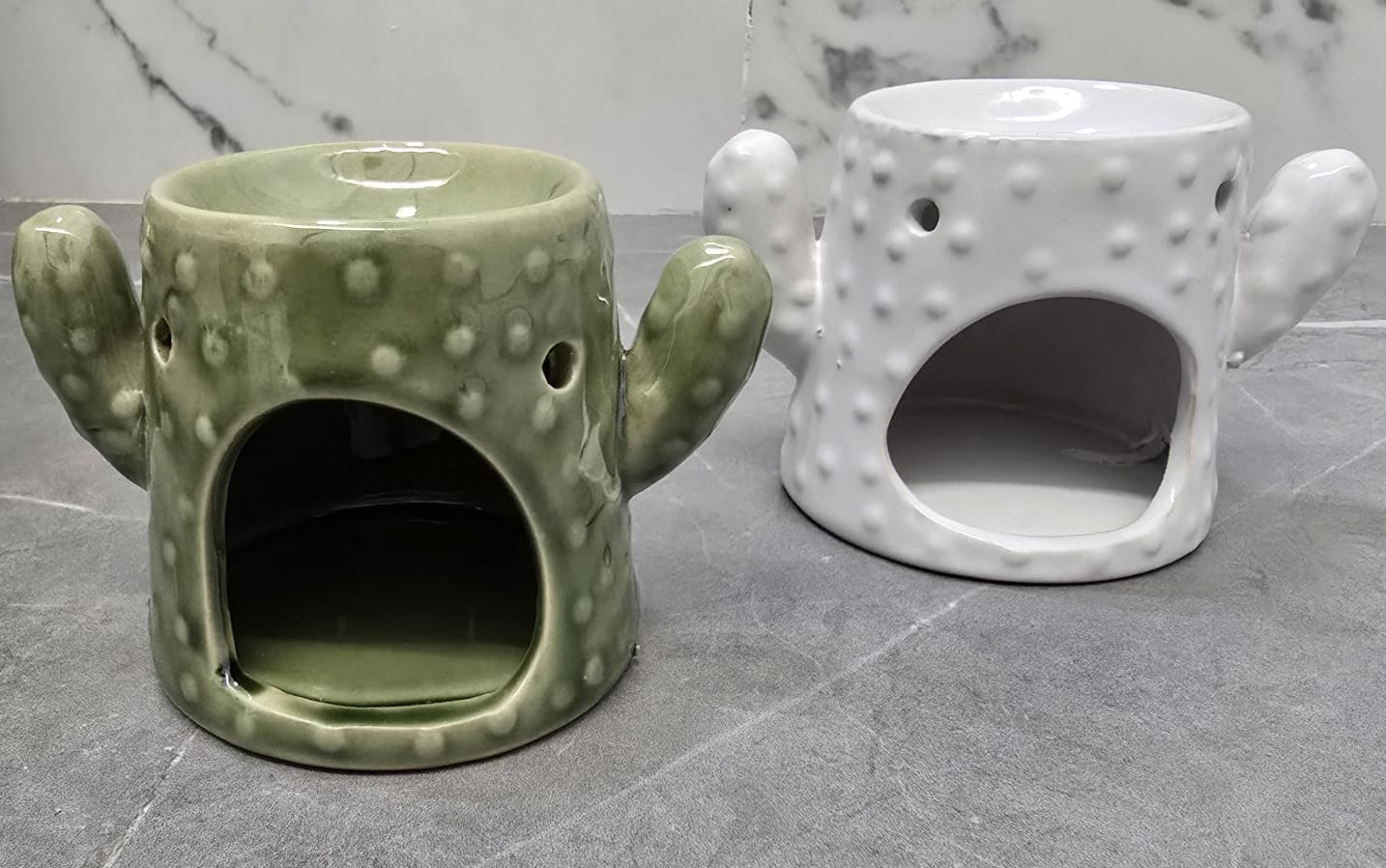 Trae la serenidad del desierto a tu hogar con este quemador que combina la belleza natural de los cactus con la funcionalidad de un quemador de wax melts de alta calidad. Este encantador diseño botánico no solo difunde tus fragancias favoritas, sino que también añade un toque de naturaleza y tranquilidad a cualquier espacio.