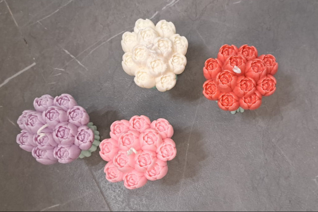 Pequeños ramos de tulipanes hechos a mano con cera de soja vegetal sin parafinas, ni materiales tóxicos. Tiene una medida de 10,5 cm x 7,5 cm. Disponible en varios colores (selecciona "multicolor" y en observaciones pon el color).